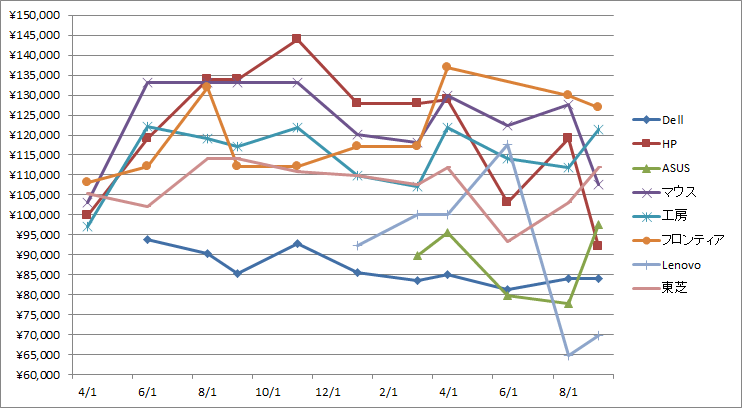 2ヶ月ぶり42度目の更新です。 今回はNECが追加されて、合計8メーカーとなっております。