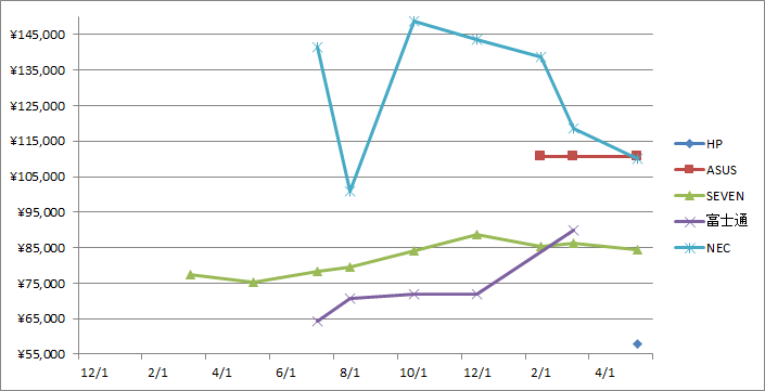 2ヶ月ぶり71度目の更新です。 今回はHPが追加したものの富士通が無くなって、合計4メーカーとなっております。