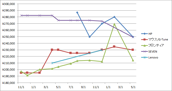 2ヶ月ぶり14度目の更新です。 今回はASUSが追加されたものの、SEVENとLenovoが無くなって、合計4メーカーとなっております。 また、マウスコンピュータも現在品切れ中です。