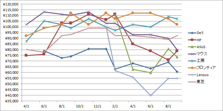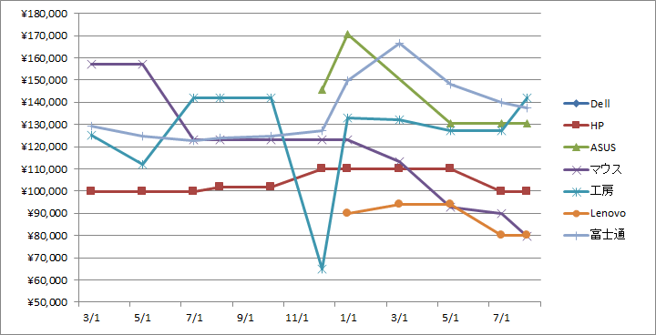 2ヶ月ぶり78度目の更新です。 今回はLenovoが追加されて、合計6メーカーとなっております。