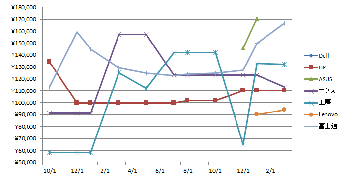 2ヶ月ぶり77度目の更新です。 今回はマウスコンピュータが追加されて、合計5メーカーとなっております。