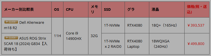 今回のアップデート(18型追加)により、真の意味で“大画面モンスター級ノートPC比較”が可能になりました。 価格は高額ですが、どれも“買って後悔しないレベル”のマシンです。
