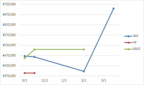 一方、Dellは価格が乱高下していまして、トランプ関税の影響と思われますが、そういう意味ではLenovoもいつ価格が上がるのか油断できないところです。