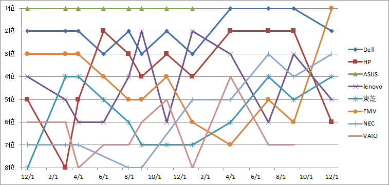 2ヶ月ぶり42度目の更新です。 今回はNECが追加されて、合計8メーカーとなっております。