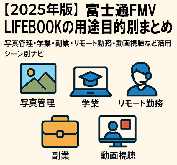 【2025年版】富士通FMVの用途・目的別まとめ|写真・学業・副業・リモート勤務・動画視聴など活用シーン別ナビ