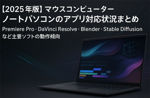 本ページでは、マウスコンピューター製ノートパソコンにおける主要アプリ(動画編集・3D・AI生成・配信)の動作傾向をまとめています。 用途別に最適なシリーズを選ぶ際の参考にしてください。