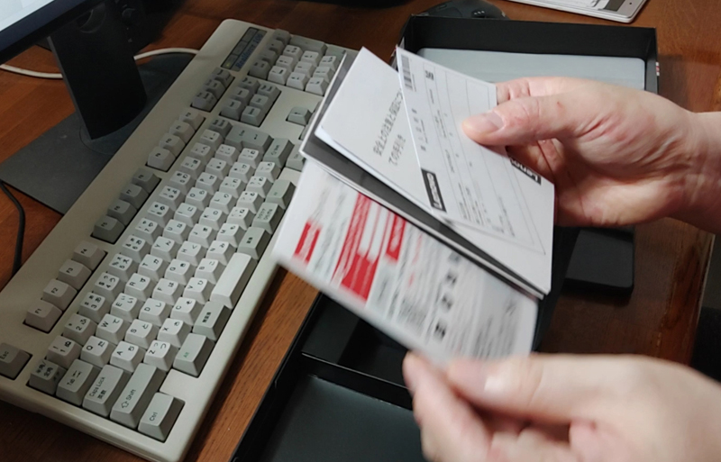 冊子類はクイックスタートガイド、「安全上の注意と保証についての手引き」、サポートのしおり、購入証明書の4点です。
