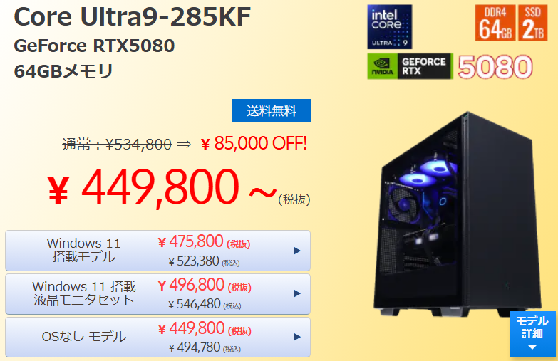 フロンティアにて「買い替え応援市」の開催です。 前回のHPと同じく、フロンティアもただの特価セールになりますので、買い取り特典などはありません。 また、メモリとSSDの格安オプションも用意されています。 下記は一例ですのでご参考までに。 期間:2025/6/18-15:00迄