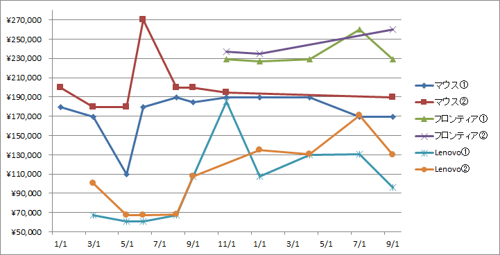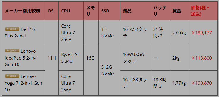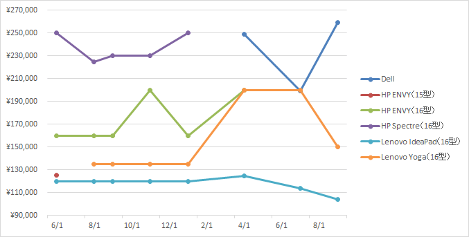 2ヶ月ぶり2度目の更新です。 今回はLenovoが追加されて、合計4メーカーとなっております。